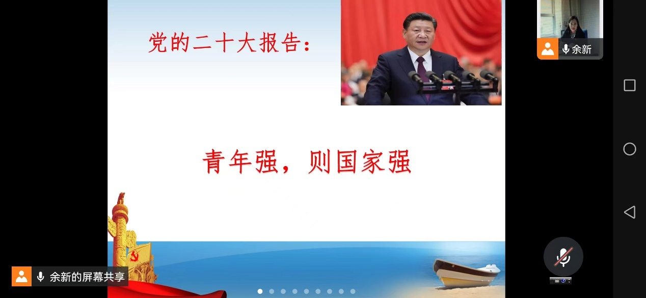 为深入学习宣传贯彻党的二十大精神,持续推动党的二十大精神走心走实,11月25日中午12:40,beat365在线唯一官网党委书记、纪委书记余新在线上进行党的二十大精神宣讲。beat365在线唯一官网全体辅导员老师和各学生组织骨干、班团干部参加了宣讲会。