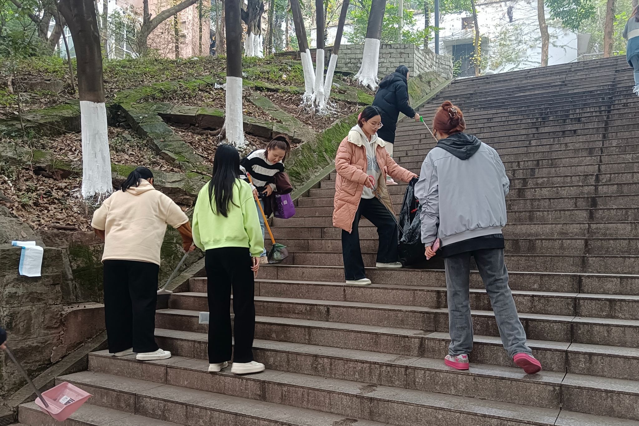 大一至大三各班级组织同学们自田家炳车库到北4楼栋尽头的主次干道及田家炳教室进行清扫保洁。同学们分工合作,积极主动,清扫落叶、捡拾白色垃圾、檫黑板等,认真细致,将教室、道路、阶梯变得整洁干净。整个实践过程井井有条,各尽其职,同学们用行动践行了“崇尚劳动、热爱劳动、辛勤劳动、诚实劳动”的劳动精神,在劳动中磨练意志,锻炼自己,美化校园,践行社会主义核心价值观。