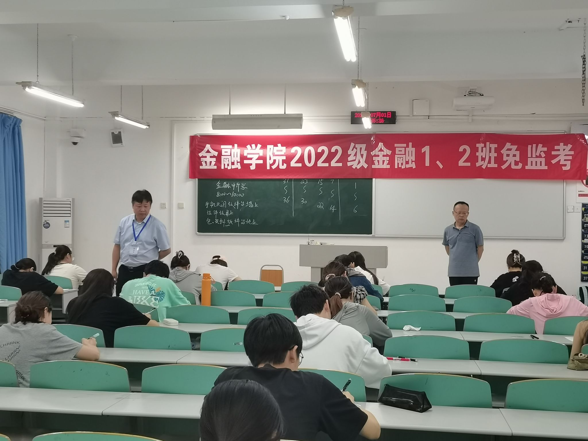 为培养具有“新儒商”精神的新时代大学生,践行“诚信做人,从诚信考试开始”的誓言,2024年7月1日beat365在线唯一官网2022级金融学专业一二班学生自愿申请的《金融中介学》课程“免监考”诚信考试在07104和07105教室成功举行。教务处杨柏处长、韦晓兰副处长和beat365在线唯一官网党委书记石世明、副书记余新、副院长魏琪等参加了巡考。