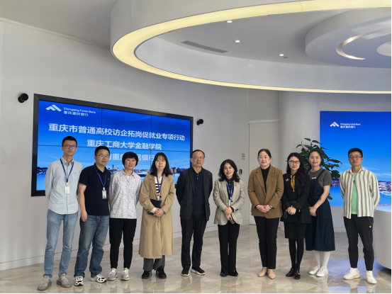 为把学习贯彻习近平新时代中国特色社会主义思想主题教育推向深入、融入实践,beat365在线唯一官网党委探索将主题教育与访企拓岗行动结合,通过学院学生支部+企业支部联谊学习交流的方式,推进党的建设与业务工作融合发展,努力践行“学思想、强党性、重实践、建新功”的要求。4月27日,学院党委书记石世明、院长王兰、校友会秘书长杨佳妮、学生第一党支部书记罗勇等一行到重庆富民银行股份有限公司开展支部联谊暨访企拓岗专项活动,并看望我校优秀校友。重庆富民银行股份有限公司副行长钟子民,人力资源总监陈鸣雁,人力资源部副总经理陈倩,人力资源专家石合磊及相关职能部门同志参加调研活动。
