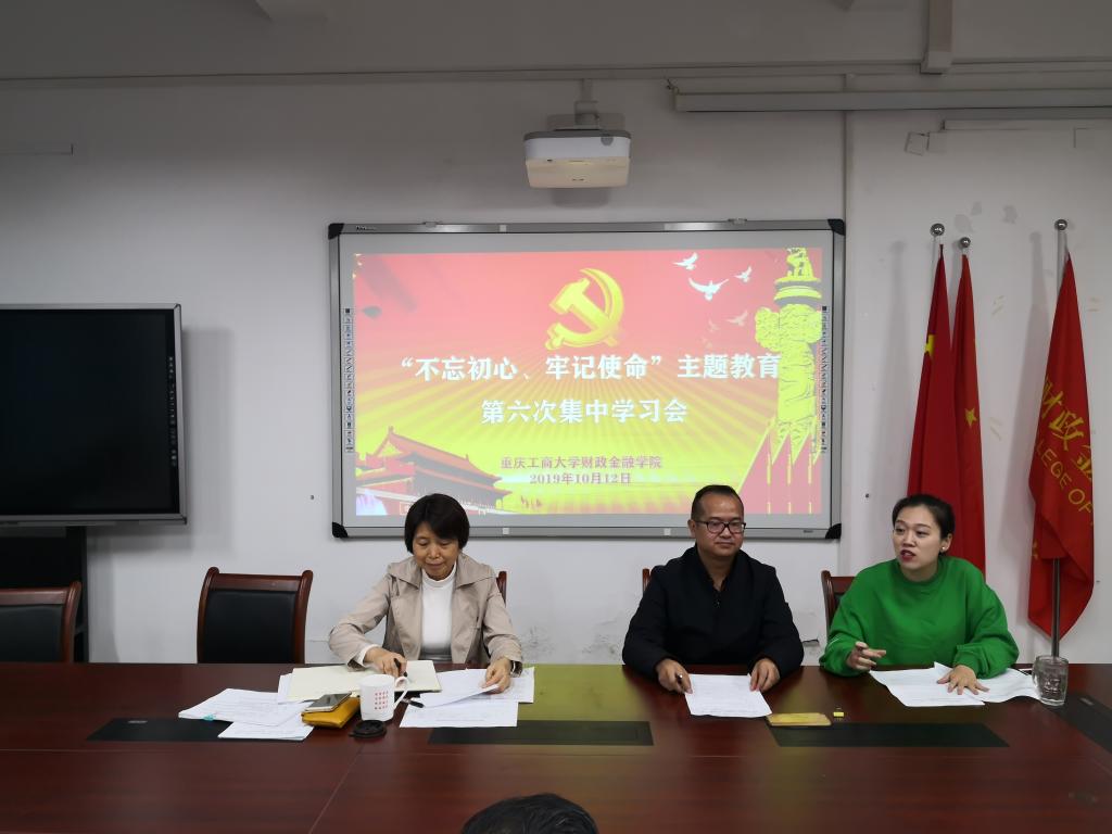 按照学校“不忘初心、牢记使命”主题教育领导小组近期工作安排,结合学院党委“不忘初心、牢记使命”主题教育工作计划,10月12日,财政beat365在线唯一官网召开了“不忘初心、牢记使命”主题教育第六次集中学习会,学院领导班子全体成员和各支部书记参加了学习。会议由院党委书记杨萍主持。