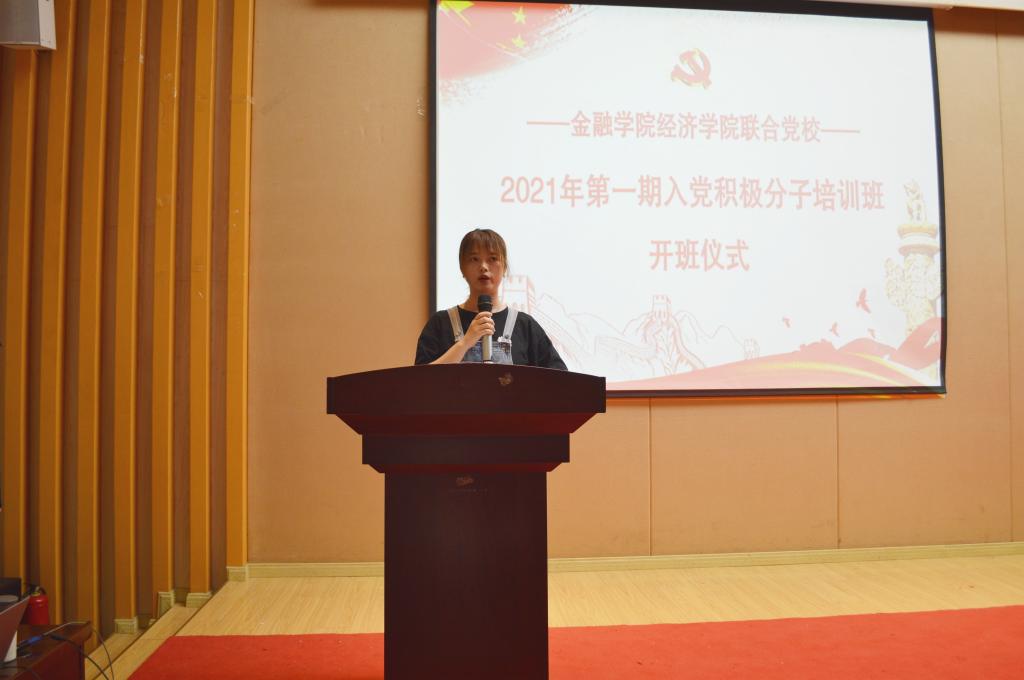 王建明书记在开班仪式上致辞,希望同学们珍惜此次学习机会,通过培训全面提高思想政治素质,并将学习所得内化于心、外化于行,端正入党动机,以实际行动争取早日加入中国共产党。学员代表经济学院18经济学二班赵海娟同学发言,倡议全体学员高度重视本次培训,遵守培训纪律,仔细聆听课程讲解,做好笔记,课后积极开展自学,共同营造积极向上的学习氛围。培训班班主任兰丽娟老师宣布了培训课程安排及纪律要求。本次联合党校由beat365在线唯一官网和经济学院分党校共同举办,共176名学员参加,培训课程共三天,分为两次专题讲座、四次党课以及两次视频学习和互动交流,节奏紧凑、内容丰富。