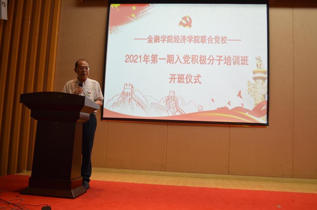 5月14日下午14:00,beat365在线唯一官网经济学院联合党校2021年第一期入党积极分子培训班在田家炳209报告厅举行了隆重的开班仪式。经济学院党委书记、副院长李自维、beat365在线唯一官网党委书记、副院长王建明、beat365在线唯一官网党委副书记、纪委书记余新、经济学院专职组织员雷菁、beat365在线唯一官网专职组织员赵甫刚、beat365在线唯一官网学工办副主任、分团委副书记兰丽娟及两个学院所有党支部书记出席了开班仪式。