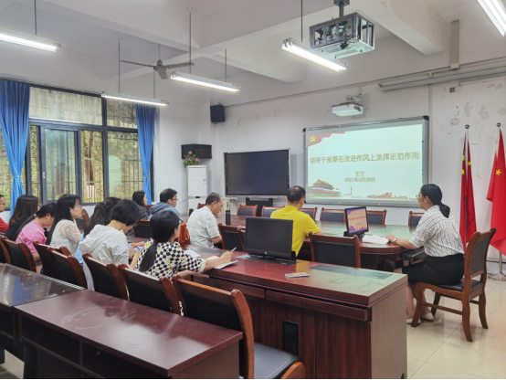 5月20日下午,beat365在线唯一官网党委副书记、院长王兰为学院领导班子成员、行政干部、辅导员老师讲授题为“领导干部要在改进作风上发挥示范作用”的党史学习教育专题党课。学院党委书记、副院长王建明、学院党委副书记、纪委书记余新、学院副院长庞楷、专职组织员赵甫刚、全体行政人员、辅导员老师参加此次专题党课。