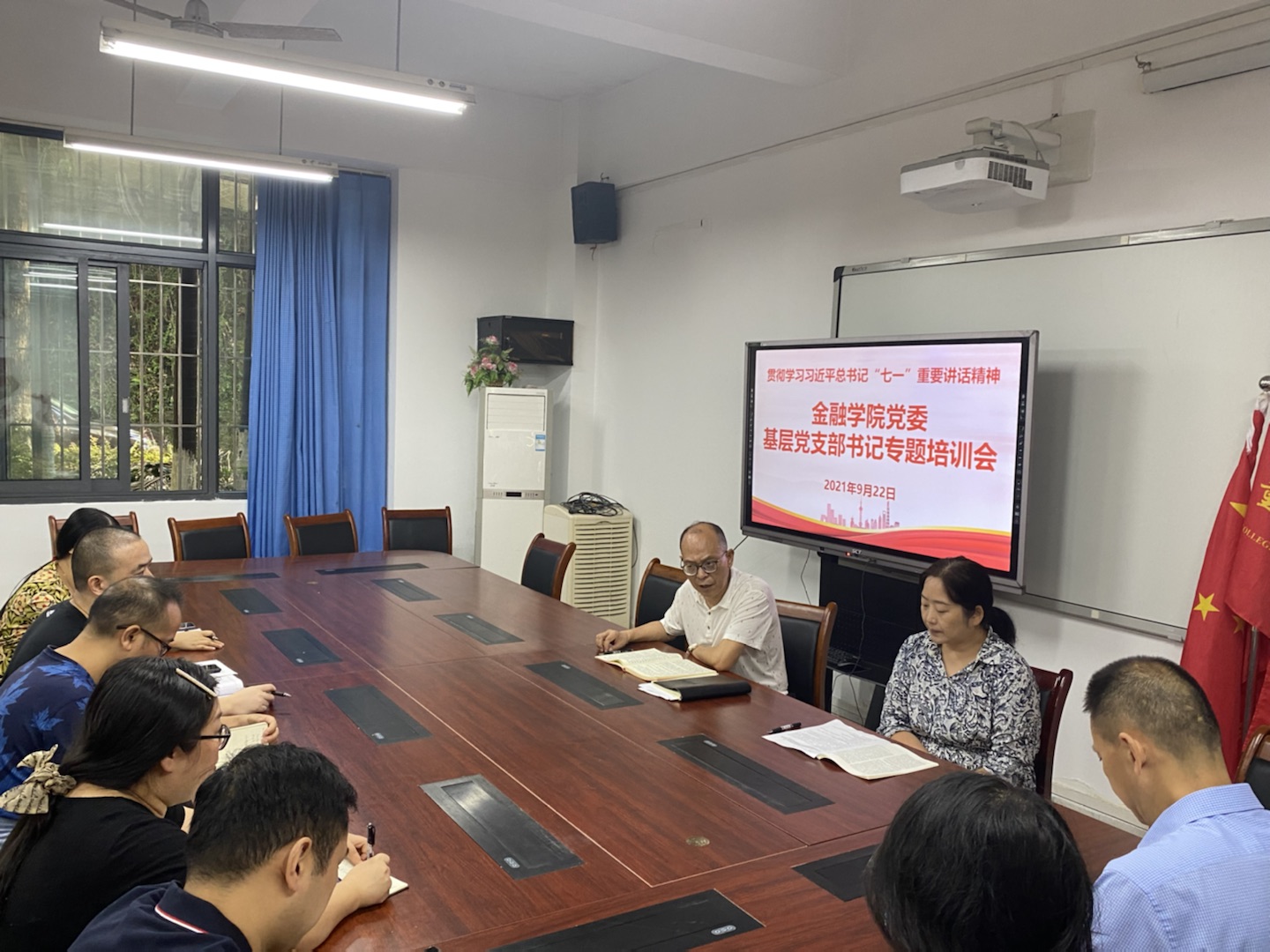 2021年9月22日上午,beat365在线唯一官网党委组织召开基层党支部书记专题培训会。学院党委书记、副院长王建明,党委副书记、院长王兰,专职组织员赵甫刚和各支部书记参加了会议。王建明主持会议。