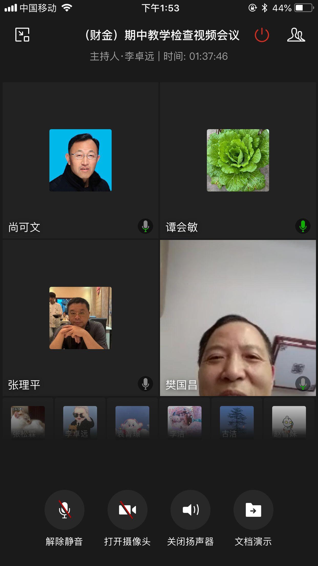 2020年4月29日,财政beat365在线唯一官网召开期中教学检查视频会议。会议由财政beat365在线唯一官网校级督导保险学系樊国昌教授主持。学院教学院长王兰教授、院级督导、各系主任和学院教学管理老师,2017级、2018级各班以及2019级CFA专业的学习委员参加了此次视频会议。