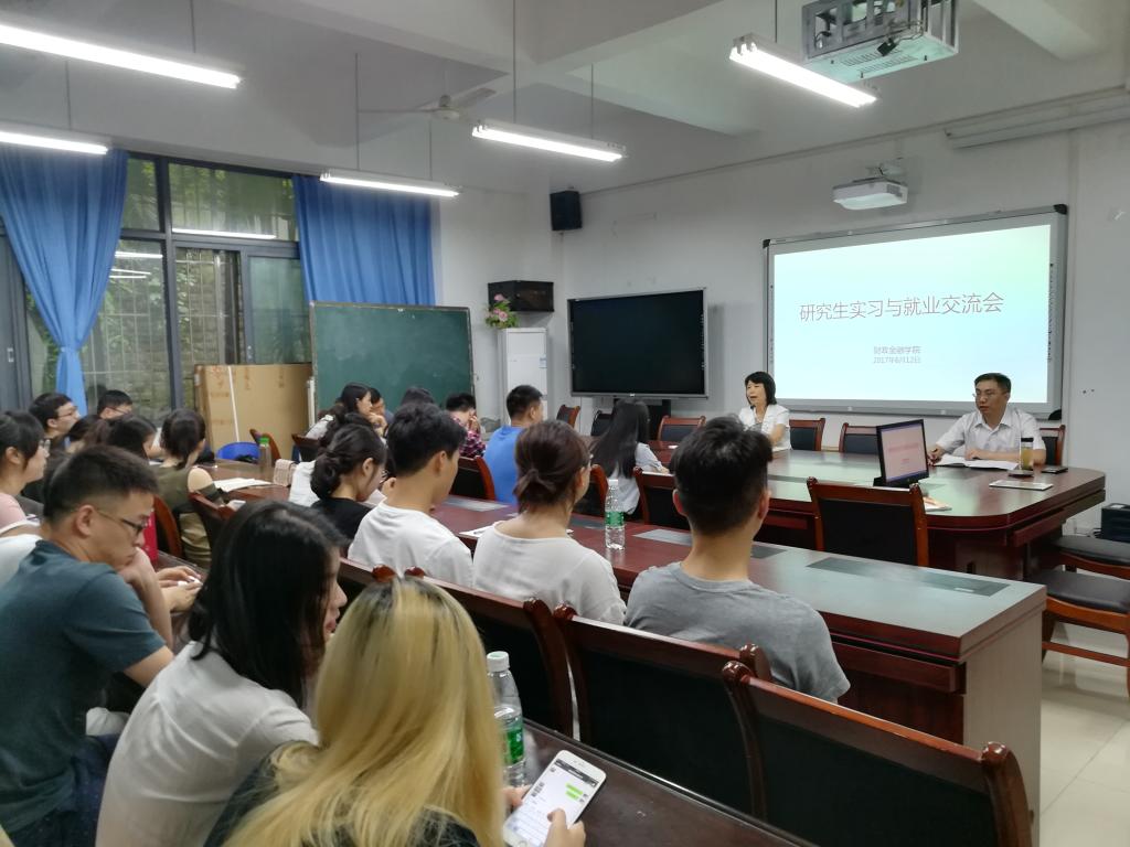 为帮助同学们正确地认识自我、找准未来的方向和目标、为以后的就业和职业竞争做好准备,财政beat365在线唯一官网于2017年6月12日下午在田家炳书院会议室专门举办了“研究生实习与就业交流会”,并邀请财政beat365在线唯一官网党委书记杨萍教授亲自为同学们指导和交流,参加本次交流会的有15级金融学和财政学专业、16级金融硕士的研究生。本次交流会由财政beat365在线唯一官网副院长曾胜教授主持。