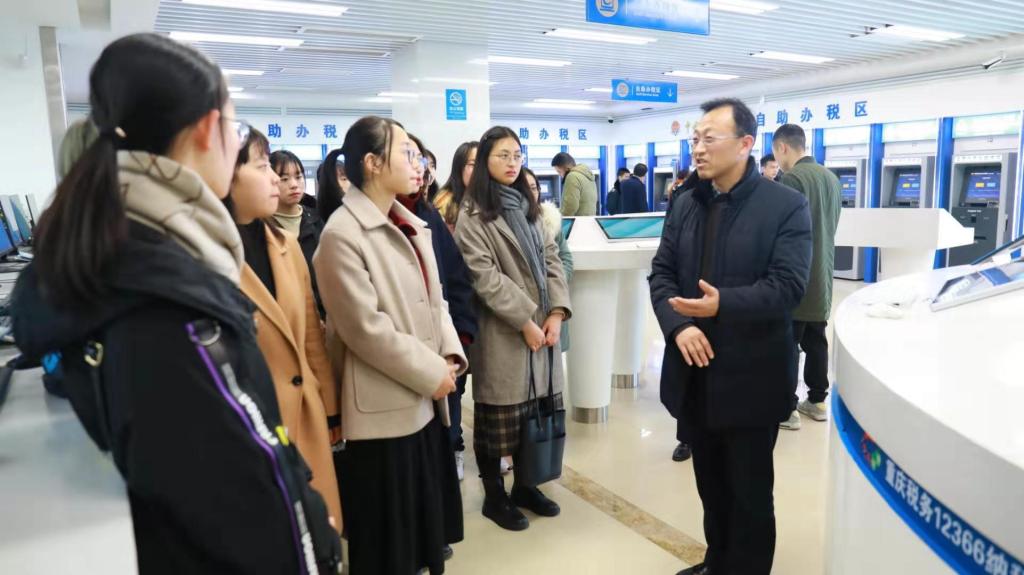 为了加强税收理论与实践融合教学,2019年12月26日下午,我校财政beat365在线唯一官网组织2019级16名税务硕士走进重庆市南岸区税务局办税服务厅,开展了一次以学习大数据办税为主题的移动课堂。