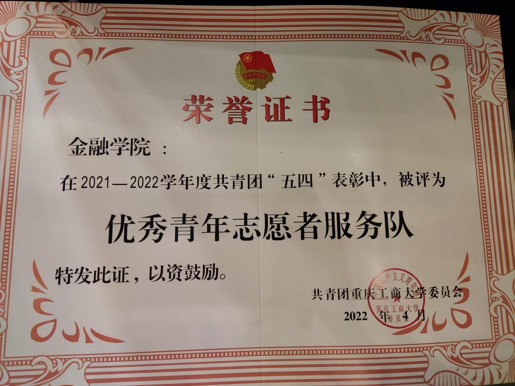 4月29日下午,我校2022年五四表彰大会在南岸校区7100报告厅隆重举行。beat365在线唯一官网斩获五四红旗团委称号、荣获共青团宣传工作奖,同时beat365学生会、青年志愿者服务队分别被评选为优秀学生会和优秀青年志愿者服务队。