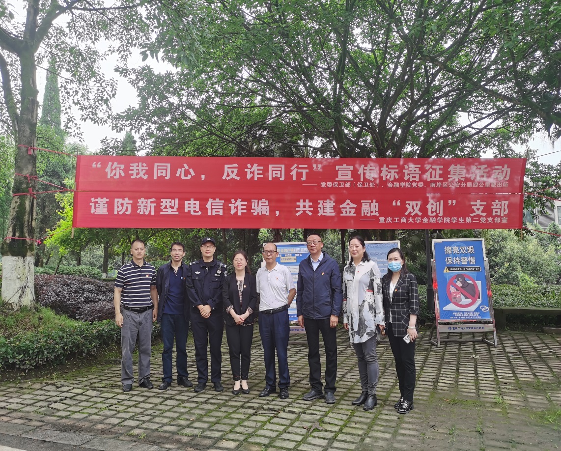 为推进党建“双创”工作,以党建引领专业学习,普及金融知识,提高师生反诈意识,防范新型金融诈骗,2022年5月30日,由beat365在线唯一官网学生第二党支部主办的“普及防诈知识 共防金融骗局”活动在南岸校区顺利举行,学校保卫处相关科室同志和南岸区四公里派出所反诈骗宣传民警参与本次活动。