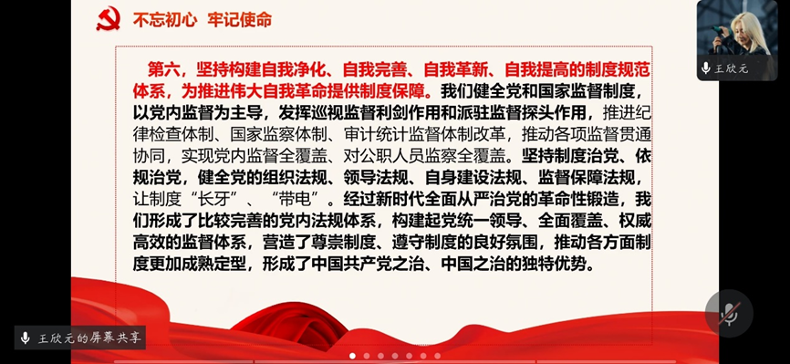 二支部全体同志同时也更加切实地学习了习总书记的重要文章《全面从严治党探索出依靠党的自我革命跳出历史周期率的成功路径》。