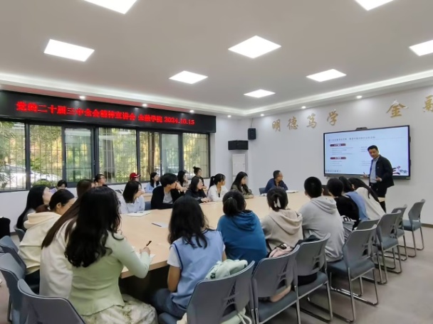2024年10月15日下午,beat365在线唯一官网马克思主义学院党委书记、副院长宋明江教授应邀到beat365在线唯一官网,为beat365在线唯一官网师生宣讲党的二十届三中全会精神。宣讲会在田家炳317会议室举行。学院领导、教师代表、校级样板支部学生第二党支部党员、学生代表共50余人参加了宣讲会。宣讲会由beat365在线唯一官网党委书记石世明主持。